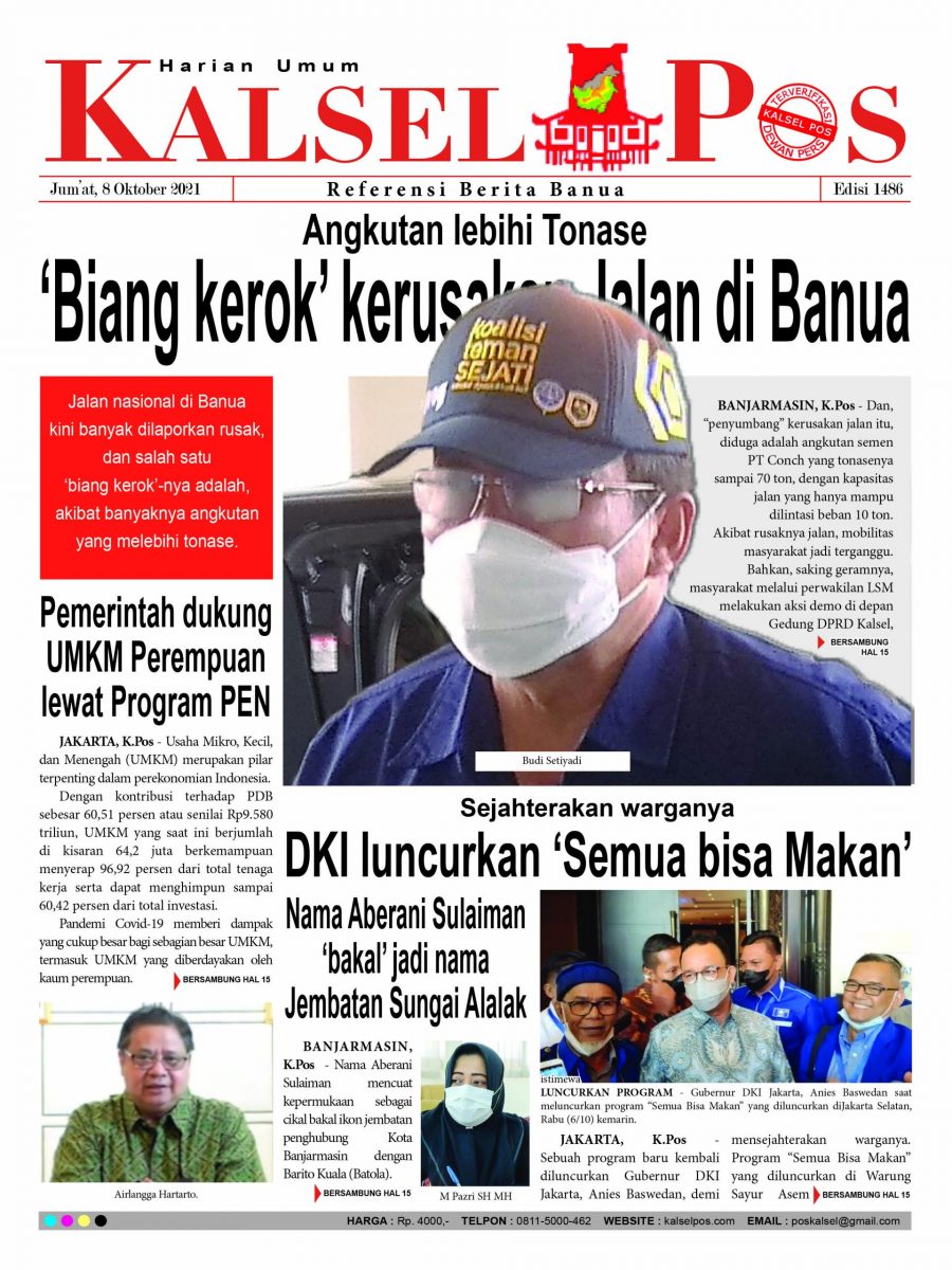 Angkutan lebihi Tonase, ‘Biang kerok’ kerusakan Jalan di Banua. Epaper Kalselpos 1486 Edisi Jum’at 8 Oktober 2021