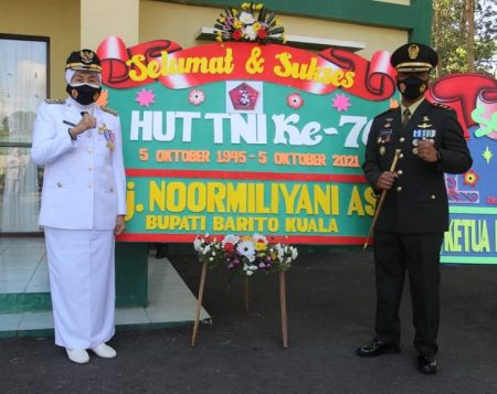 Penghibahan sebidang tanah bertepatan dengan momentum HUT ke-76 TNI ini untuk keperluan pembangunan Koramil 1005-5 Anjir Muara.