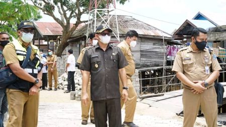 Selain meninjau perbaikan jalan di Desa Tambangan, Wabup Syamsuri bersama Kepala Dispera KPLH, Ronaldy Prana Putra melihat pengerjaan jalan titian di Desa Pakan Dalam yang telah rampung dikerjakan.