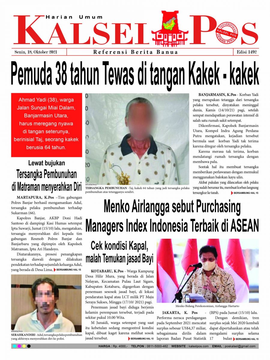 Pemuda 38 tahun Tewas di tangan Kakek – kakek. Epaper Kalselpos 1492 Edisi Senin 18 Oktober 2021