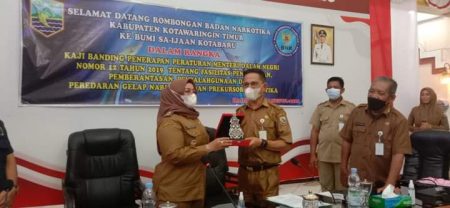 Kedatangan Wakil Bupati Kotawaringin Timur dan rombongan ini untuk kaji banding terkait dengan penerapan peraturan Menteri Dalam Negeri Nomor 12 tahun 2019 tentang Fasitas Pencegahan, Pemberantasan, Penyalahgunaan dan Peredaran Gelap Narkotika dan Prekursor Narkotika.