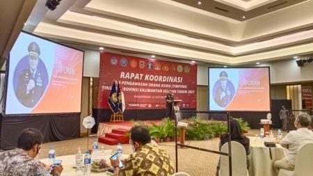 Banjarmasin , kalselpos.com – Tim Pengawasan Orang Asing (TIMPORA) Provinsi Kalimantan Selatan menggelar Rapat Koordinasi pengawasan orang asing di Kalimantan Selatan di salah satu hotel kenamaan di Banjarmasin, Jumat (22/10/2021).