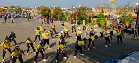 KOTABARU, kalselpos.com – Senam Jumba bersama yang diikuti semua kalangan masyarakat, di halaman Siring Laut Kotabaru, Minggu pagi (24/10/2021).
