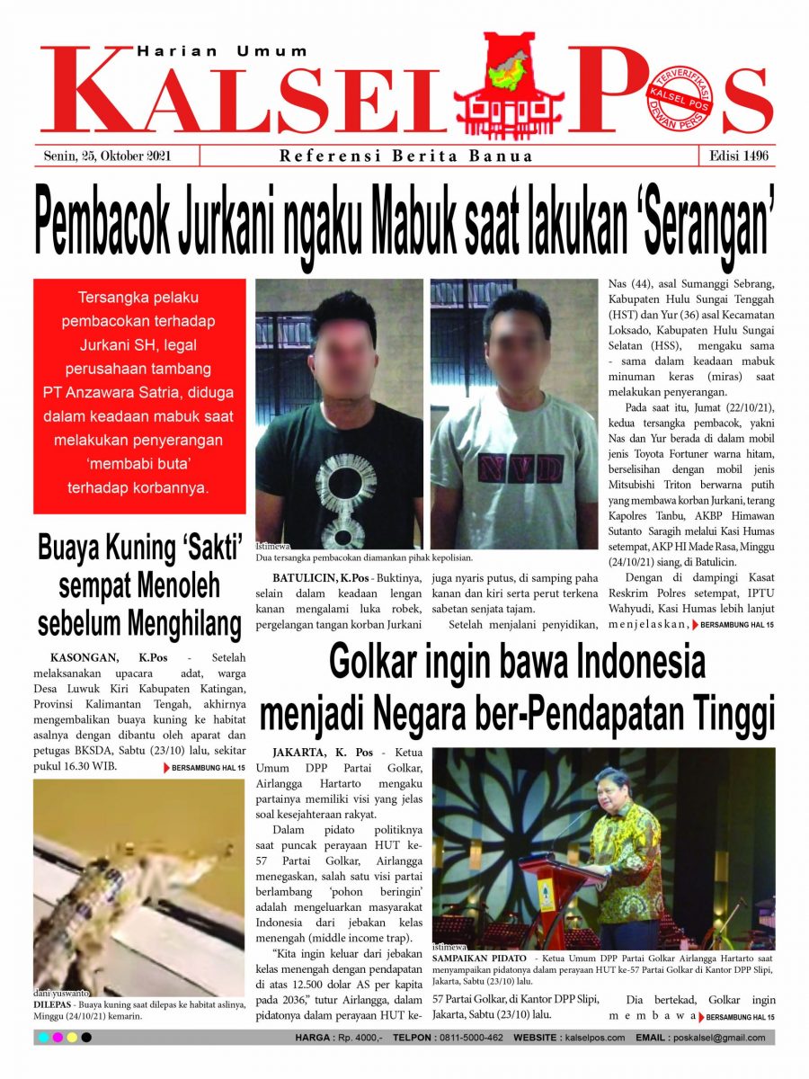 Pembacok Jurkani ngaku Mabuk saat lakukan ‘Serangan’. Epaper Kalselpos 1496 Edisi Senin 25 Oktober 2021