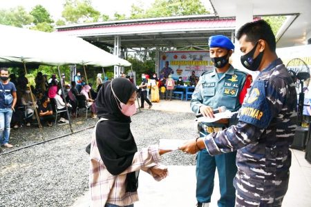 Kotabaru, kalselpos.com – Dalam mendukung program Pemerintah untuk percepatan capaian target vaksinasi Nasional Pangkalan TNI-AL Kotabaru (Lanal) kembali menggelar serbuan vaksinasi maritim bagi masyarakat, Sabtu (30/10/2021).