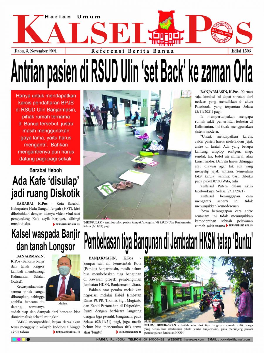 Antrian pasien di RSUD Ulin ‘set Back’ ke zaman Orla. Epaper Kalselpos 1503 Edisi Rabu 3 November 2021 Zainal3 November 20211,729 views Halaman: 1 2 3 4 5 6 7 8 9 10 11 12 13 14 15 16 Pos terkaitTerkait Korupsi Dana Desa Rp657 juta, Eks Kades di Kusan Hilir divonis 3 TahunDireksi baru PAM Bandarmasih terbentuk, Zulbadi dipercaya jadi DirutParkir Pasar Wadai ‘mencekik’, Pengendara Motor ditagih Rp10 Ribu