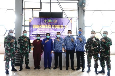 Martapura, kalselpos.com – Komando Distrik Militer (Kodim) 1006 Martapura bersama Dinas Kesehatan (Dinkes) Kabupaten Banjar, menggelar kegiatan vaksinasi Covid-19 bagi ratusan warga binaan Lapas Narkotika Kelas IIA Karang Intan, Rabu (10/11/2021).