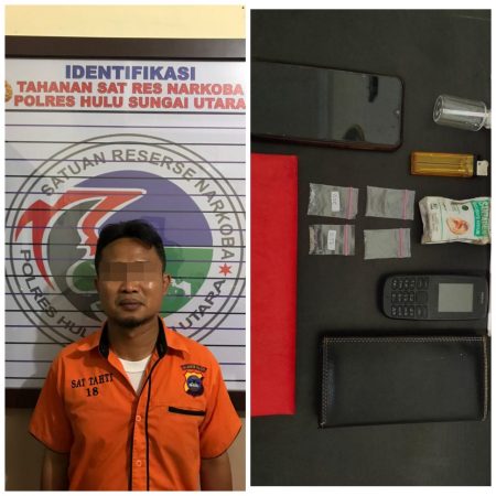 AQ (36), warga Jalan Veteran RT 1, Desa Jumba, Kecamatan Amuntai Selatan, terpaksa dibawa oleh Satres Narkoba Polres Hulu Sungai Utara (HSU), karena kedapatan menyimpan Narkotika jenis sabu saat digerebek di dalam rumahnya.