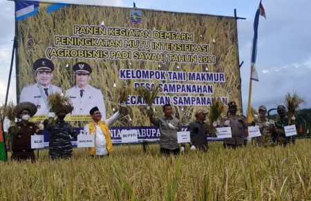 “Saya menyampaikan terima kasih dan penghargaan yang tinggi kepada semua pihak yang terlibat atas bantuan juga kerjasamanya dengan Pemerintah Kabupaten Kotabaru dalam memajukan sektor pertanian khususnya kepada kelompok Tani Makmur Desa Sampanahan yang telah berhasil melaksanakan panen raya kegiatan Demfarm peningkatan mutu intensifikasi (Agrobisnis Padi Sawah),” ujar Bupati H Sayed Jafar.