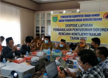 “Maksud dan tujuan ekspose ini adalah menyusun dokumen perencanaan kontijensi untuk antisipasi ancaman bencana banjir di Tanan Bumbu,” kata Kalak BPBD Tanbu Eriyanto Rais dalam sambutannya di ruang rapat BPBD Tanbu, Senin (15/11/2021).