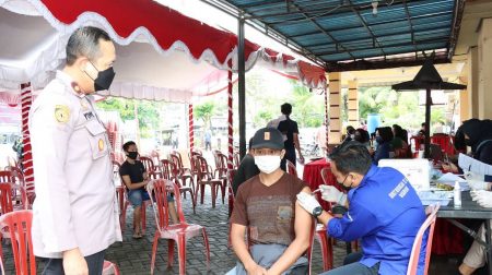 Hari ini, sesuai jadwal yang diumumkan beberapa hari sebelumnya melalui akun resmi Instagram @polresta_banjarmasin, agenda vaksinasi berlangsung di Polsek Banjarmasin Selatan. Selasa (16/11/2021).