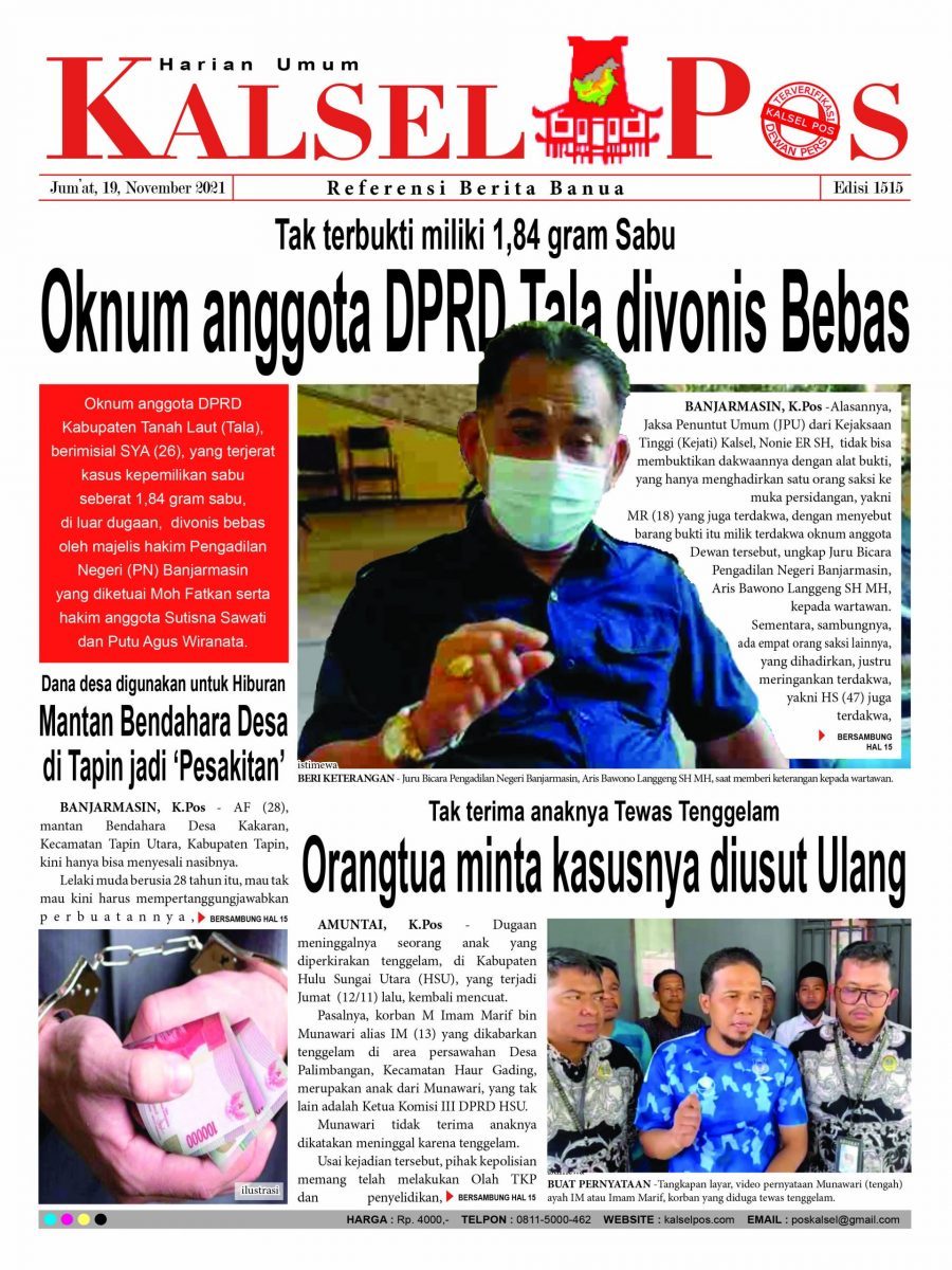Tak terbukti miliki 1,84 gram Sabu, Oknum anggota DPRD Tala divonis Bebas. – Epaper Kalselpos 1515 Zainal19 November 202124 Desember 20251,725 views Halaman: 1 2 3 4 5 6 7 8 9 10 11 12 13 14 15 16 Pos terkaitTerkait Korupsi Dana Desa Rp657 juta, Eks Kades di Kusan Hilir divonis 3 TahunDireksi baru PAM Bandarmasih terbentuk, Zulbadi dipercaya jadi DirutParkir Pasar Wadai ‘mencekik’, Pengendara Motor ditagih Rp10 Ribu