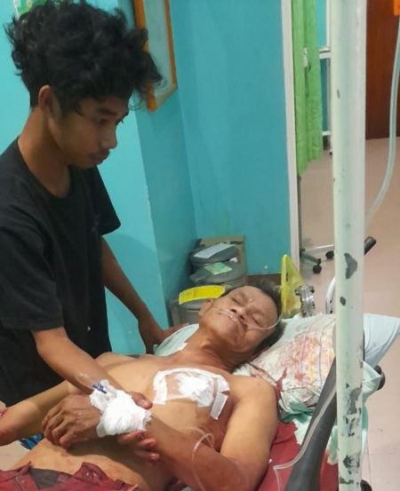 Pria yang merupakan seorang wakar (penjaga malam) diwilayah setempat ini mengalami luka serius hingga tubuh dan pakaiannya bersimbah darah. Warga yang melihat lalu langsung memberi pertolongan dengan mengevakuasi korban ke Rumah Sakit Suaka Insan Banjarmasin yang dibantu tim relawan untuk mendapatkan pertolongan medis. Terdapat beberapa luka tusukan dibagian dada korban.