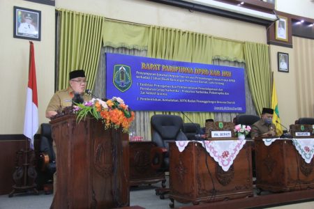 “Setelah mendengar dan mempelajari Pemandangan Umum yang disampaikan oleh masing-masing Fraksi DPRD, terhadap ke-2 Rancangan Peraturan Daerah yang kami ajukan, saya atas nama Pemerintah Daerah, menyampaikan terima kasih dan penghargaan yang setinggi-tingginya, atas segala saran, masukan, dan dukungan yang diberikan,” kata Husairi.