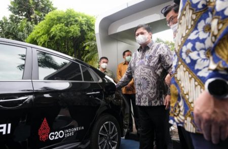 leading by example adalah penggunaan Electric Vehicle dalam Penyelenggaraan Presidensi G20 untuk para official,” ujar Menteri Koordinator Bidang Perekonomian Airlangga Hartarto dalam acara serah terima penggunaan mobil listrik dari Hyundai sebagai kendaraan resmi Delegasi G20 di Jakarta, Rabu (24/11).