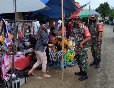 Tanjung, kalselpos.com-Babinsa Koramil 03/Tanjung Kodim 1008/Tabalong melakukan himbauan sekaligus pemantauan terhadap aktivitas pedagang maupun pembeli yang ada di Pasar Jangkung, Kecamatan Tanjung, Kabupaten Tabalong, Jumat (26/11).