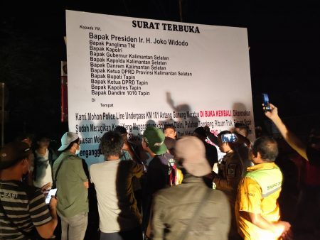 Adapun isi surat terbuka sendiri yakni bertuliskan “Kami Mohon police line underpass KM 101 Antang Gunung Meratus DIBUKA KEMBALI, dikarenakan merugikan kami yang menggantungkan hidup di sini, puluhan tongkang, ribuang truk, ribuan sopir, ratusan mekanik, puluhan ribu orang yang bergantung dari aktivitas ini. Tolong jangan jadikan kami pengangguran. TOLONG KAMI!!! Beras, lauk, Minyak Goreng Di Rumah sudah habis”.