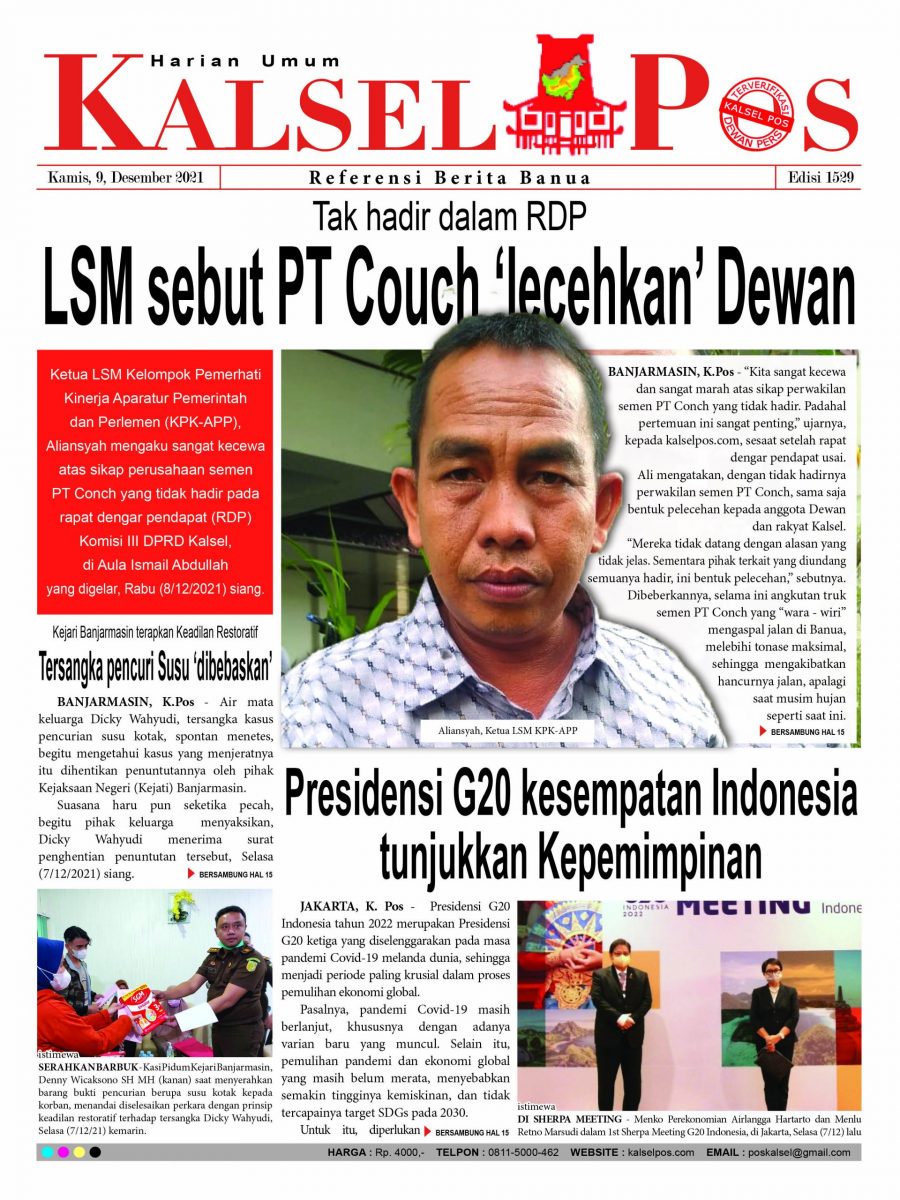 Tak hadir dalam RDP, LSM sebut PT Conch ‘lecehkan’ Dewan. – Epaper Kalselpos 1529 Zainal9 Desember 202124 Desember 20251,921 views Halaman: 1 2 3 4 5 6 7 8 9 10 11 12 13 14 15 16 Pos terkaitTerkait Korupsi Dana Desa Rp657 juta, Eks Kades di Kusan Hilir divonis 3 TahunDireksi baru PAM Bandarmasih terbentuk, Zulbadi dipercaya jadi DirutParkir Pasar Wadai ‘mencekik’, Pengendara Motor ditagih Rp10 Ribu