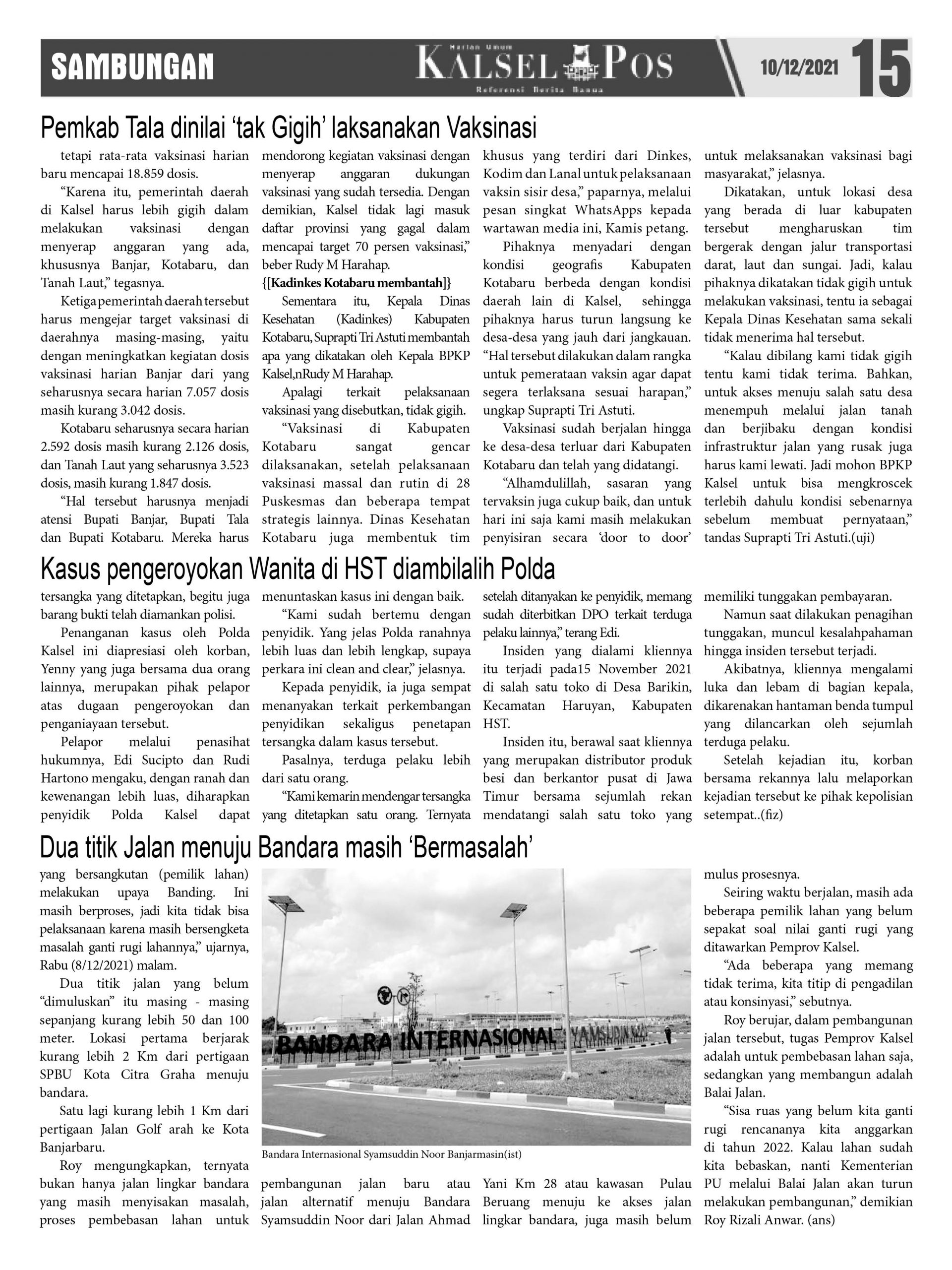 Pemkab Tala dinilai ‘tak Gigih’ laksanakan Vaksinasi, Kadinkes Kotabaru sampaikan Klarifikasi. – Epaper Kalselpos 1530