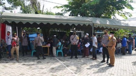 Kandangan, kalselpos.com – Bupati Hulu Sungai Selatan (HSS) bersama Kapolres HSS AKBP Sugeng Priyanto, memantau pelaksanaan vaksinasi Covid-19, di halaman Kantor Kecamatan Daha Utara, Senin (13/12) yang digelar oleh Polda Kalsel melalui Polres HSS di gerai vaksin presisi Polri menuju herd imunity.
