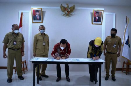 Kedua belah pihak menandatangani kesepakatan di hadapan Ditjen Bina Administarasi Kemendagri RI, Sugiarto, dan Kepala Bagian Pemerintahan Provinsi Kalimantan Selatan (Kabagpem Prov Kalsel) Maman Suherman.