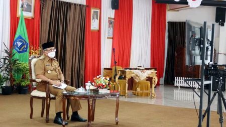 Kandangan,kalselpos.com – Bupati Hulu Sungai Selatan (HSS) Achmad Fikry mengikuti dan mendengarkan arahan Presiden Republik Indonesia (RI) Joko Widodo (Jokowi) penanganan Covid-19, melalui video conference, Kamis (16/12) yang diikuti para kepala daerah, Pangdam dan Kapolda.