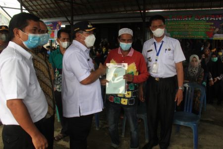 Plt Bupati HSU H. Husairi Abdi didampingi langsung Kepala BPN HSU serta Camat Amuntai Selatan, Kapolsek, Koramil serta kepala Desa Setempat menyerahkan Sertifikat Tanah kepada warga Desa Kayakah, Kecamatan Amuntai Selatan.