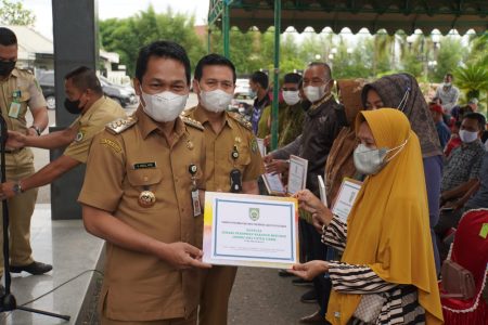Penyerahan bantuan langsung dilakukan oleh Bupati Balangan H.Abdul Hadi didampingin Wakil Bupati Balangan B.Supiani , Kepala Dinas Perdagangan,UMKM dan Koperasi Balangan Aidinnor.