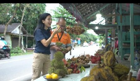 Saat kunjungan tersebut juga Yeslin mencoba beberapa buah langka eksotis yang hanya dapat ditemui di beberapa tempat di Kalimantan Selatan.