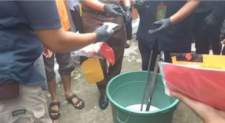 Sekedar diketahui, pemusnahan barang bukti narkoba tersebut, dilakukan dengan cara dilarutkam ke dalam ember yang berisi air dengan dicampurkan cairan pembersih lantai hingga hancur, sebelum larutan dibuang ke dalam ‘septic tank’.