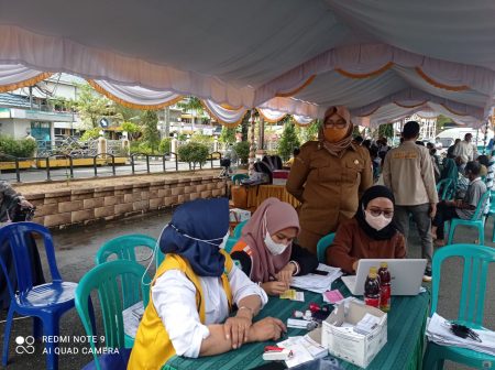 Kotabaru, kalselpos.com – Pemerintah Kabupaten Kotabaru melaksanakan kembali vaksinasi Covid-19 dosis ketiga (Booster) bagi TNI/Polri, Aparatur Sipil Negara (ASN) dan masyarakat umum yang berlangsung di Lapangan Wisata Siring Laut Kotabaru, Selasa (25/01/2022).