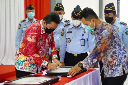 Martapura, kalselpos.com – Lembaga Pemasyarakatan (Lapas) Narkotika Kelas IIA Karang Intan, laksanakan kegiatan Deklarasi Janji Kinerja, Penandatanganan Perjanjian Kinerja dan Penandatanganan Komitmen Pelaksanaan Zona Integritas tahun 2022, Kantor Wilayah Kementerian Hukum dan HAM Kalimantan Selatan, bertempat di Lapas Kelas IIB Banjarbaru, Jum’at (28/01).