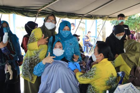 Pada pelaksanaan vaksinasi ini tampak terlihat jelas Ketua Tim Penggerak Pemberdayaan dan Kesejahteraan Keluarga (TP-PKK) Kabupaten Hj Fatma Idiana Sayed Jafar ikut melaksanakan vaksin ketiga (Booster).
