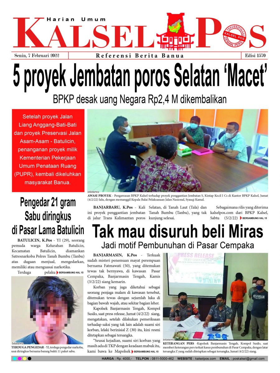 5 proyek Jembatan poros Selatan ‘Macet’. – Epaper Kalselpos 1570 kalselpos7 Februari 202224 Desember 2025174 views Kalsel Pos Berita Terkini, Kabar Terbaru Hari ini Banjarmasin Kalimantan Selatan dan Nasional Pos terkaitTerkait Korupsi Dana Desa Rp657 juta, Eks Kades di Kusan Hilir divonis 3 TahunDireksi baru PAM Bandarmasih terbentuk, Zulbadi dipercaya jadi DirutParkir Pasar Wadai ‘mencekik’, Pengendara Motor ditagih Rp10 Ribu