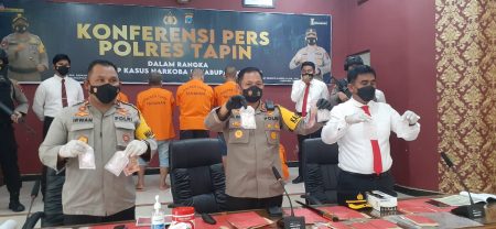 Kapolres Tapin AKBP Ernesto Saiser dan di dampingi Wakapolres Kompol Irwan dan Kasat Narkoba AKP Tatang Supriyadi, Senin (7/2/22) siang, di Rantau menyebutkan, lima tersangka pengedar sabu yang diamankan tersebut, masing – masing adalah M (48), warga Kabupatan Banjar.