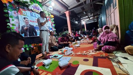 KOTABARU, kalselpos.com – Selain melaksanakan program reses di beberapa desa di Kecamatan Pamukan Utara, salah satu anggota dari partai Perindo ini juga melakukannya di Kecamatan Pamukan Barat yang berbatasan langsung dengan Provinsi tetangga yakni Kalimantan Timur. Dalam kesempatannya terlihat berhadir para tokoh agama, karang taruna, dan pemuka lainnya.