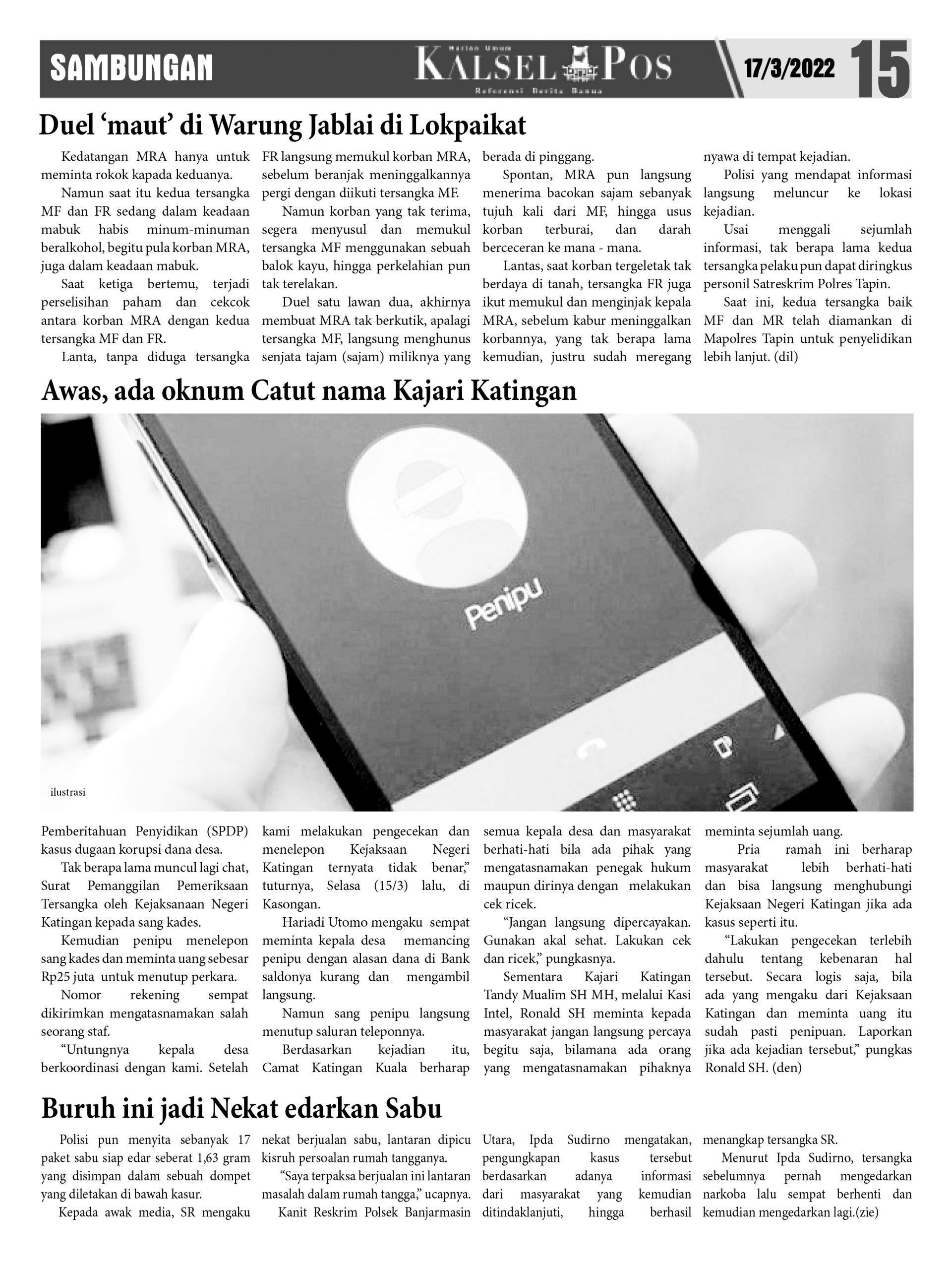 Duel ‘maut’ di Warung Jablai di Lokpaikat. – Epaper Kalselpos 1596 kalselpos17 Maret 202224 Desember 2025271 views Kalsel Pos Berita Terkini, Kabar Terbaru Hari ini Banjarmasin Kalimantan Selatan dan Nasional Pos terkait67 ribu warga Terancam tak Terlindungi JKNDiduga ‘didominasi’ Satu orang, Pelaksanaan Musprov Percasi tuai Tanya ?Banjir di Kalsel ‘meluas’