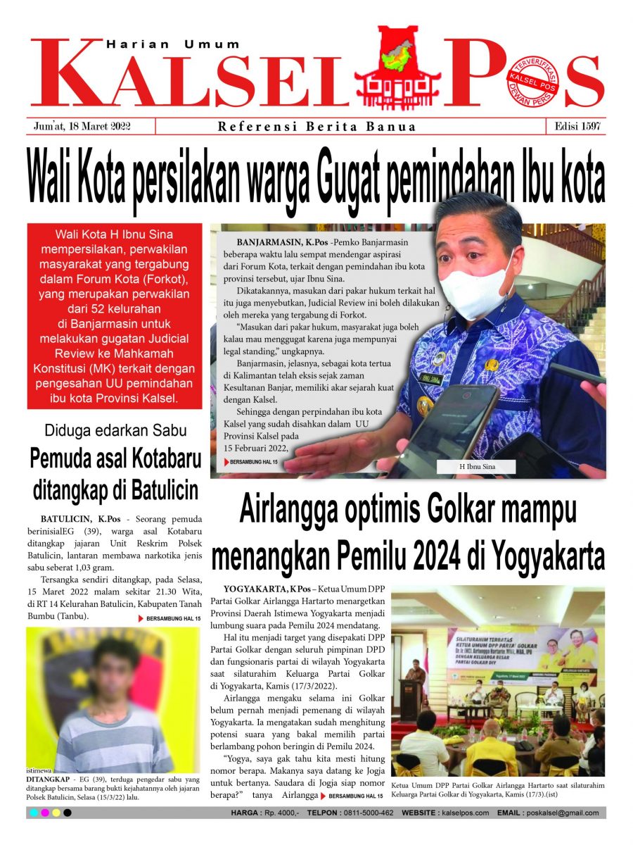 Wali Kota persilakan warga Gugat pemindahan Ibu kota. – Epaper Kalselpos 1597 kalselpos18 Maret 202224 Desember 2025121 views Kalsel Pos Berita Terkini, Kabar Terbaru Hari ini Banjarmasin Kalimantan Selatan dan Nasional Pos terkaitKUHP baru Lebih Untungkan Terdakwa, PN Barabai terapkan di Kasus PenganiayaanSampah Besar kiriman Hulu di Sungai Martapura, Berpotensi ‘hantam’ Jembatan67 ribu warga Terancam tak Terlindungi JKN