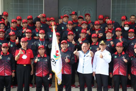 Asisten Adimisitrasi Umum Setda Tapin Fiqri Irmawan melepas secara resmi Kontingan Forda KORMI Tapin didampingi Kepala Dinas Pemuda dan Olahraga Kabupaten Tapin H Jamhuri dan Ketua KORMI Tapin Midpay Syahbani bertempat halaman Kantor Bupati Tapin kawasan Rantau Baru.