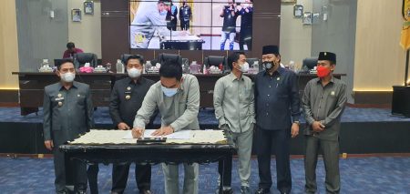 BANJARMASIN, kalselpos.com – Pemerintah Kota Banjarmasin bersama Dewan Perwakilan Rakyat Daerah (DPRD) Banjarmasin, resmi mensahkan Peraturan Daerah tentang perubahan badan hukum PDAM Bandarmasih menjadi PT Air Minum Bandarmasih, Kamis (24/3/22) di ruang utama gedung dewan.