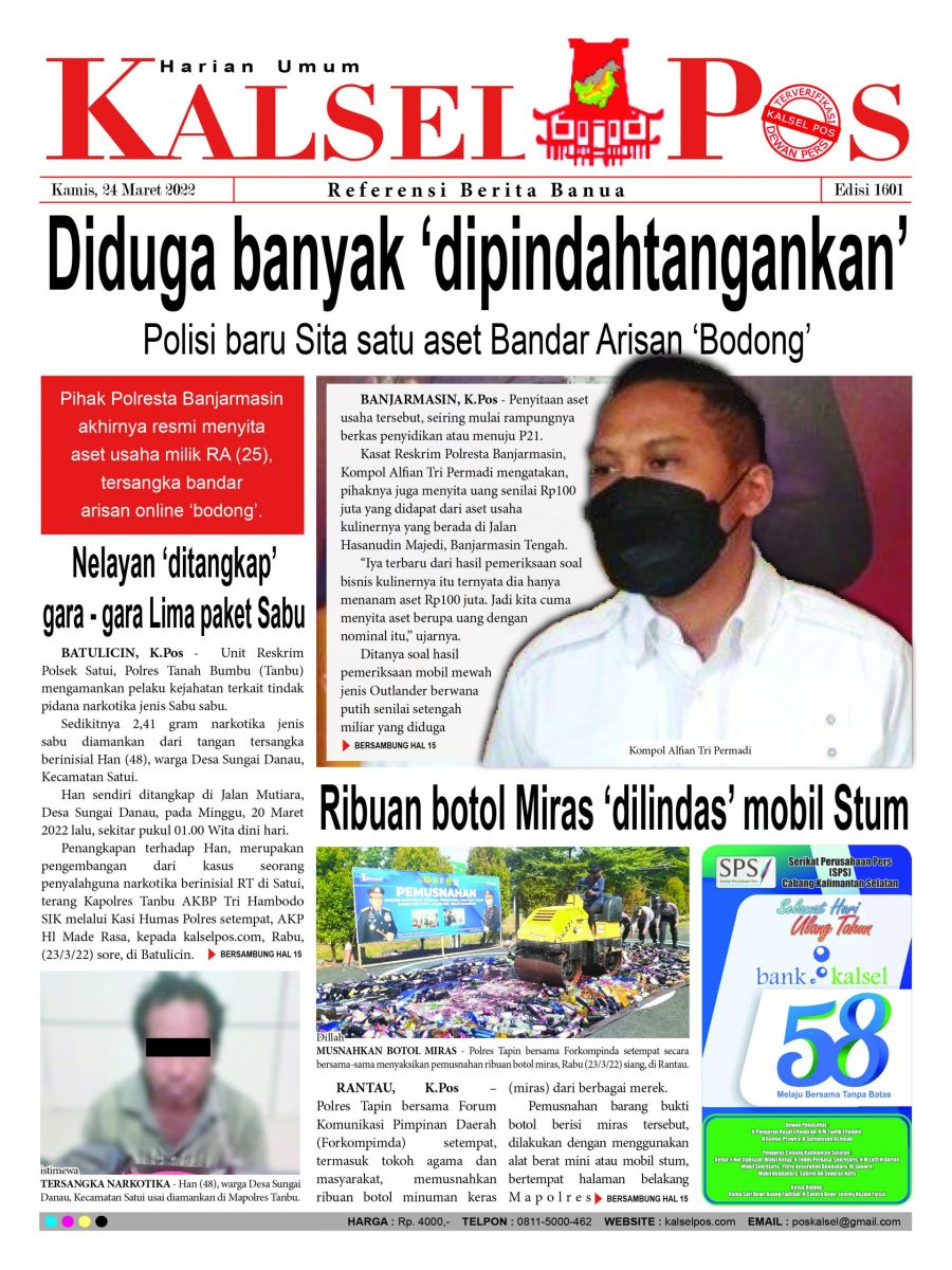 Polisi baru Sita satu aset Bandar Arisan ‘Bodong’. – Epaper Kalselpos 1601 kalselpos24 Maret 202224 Desember 2025141 views Kalsel Pos Berita Terkini, Kabar Terbaru Hari ini Banjarmasin Kalimantan Selatan dan Nasional Pos terkaitTerkait Korupsi Dana Desa Rp657 juta, Eks Kades di Kusan Hilir divonis 3 TahunDireksi baru PAM Bandarmasih terbentuk, Zulbadi dipercaya jadi DirutParkir Pasar Wadai ‘mencekik’, Pengendara Motor ditagih Rp10 Ribu