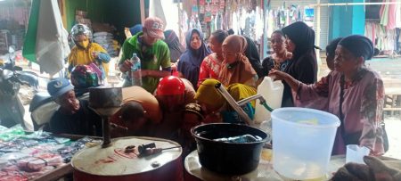 Kotabaru, kalselpos.com – Yati pedagang minyak goreng di pasar Limbur Kabupaten Kotabaru diserbu ibu-ibu, yang membeli minyak goreng curah seharga Rp14 ribu perliter.