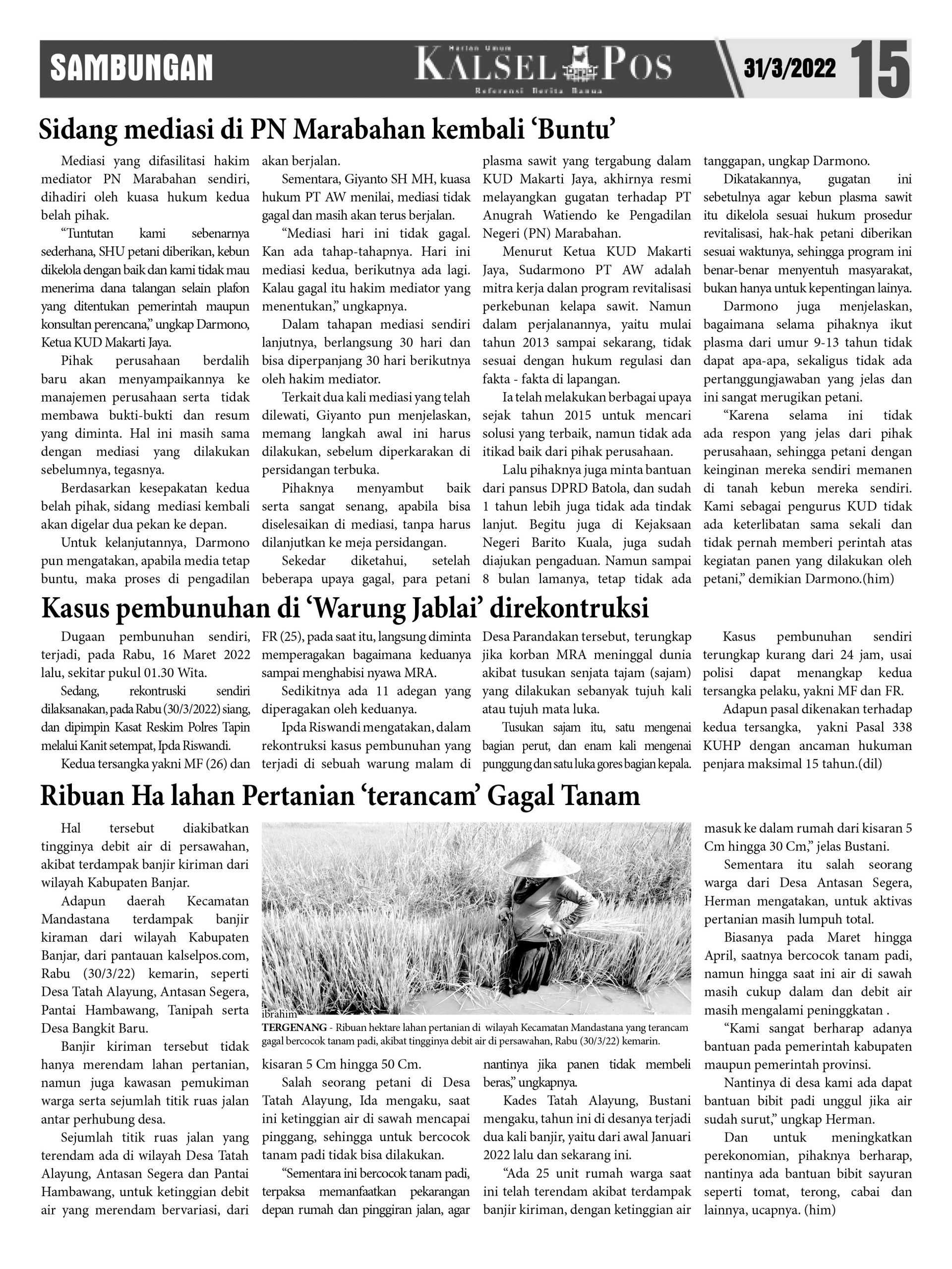 Sidang mediasi di PN Marabahan kembali ‘Buntu’. – Epaper Kalselpos 1606 kalselpos31 Maret 202224 Desember 2025140 views Kalsel Pos Berita Terkini, Kabar Terbaru Hari ini Banjarmasin Kalimantan Selatan dan Nasional Pos terkait67 ribu warga Terancam tak Terlindungi JKNDiduga ‘didominasi’ Satu orang, Pelaksanaan Musprov Percasi tuai Tanya ?Banjir di Kalsel ‘meluas’