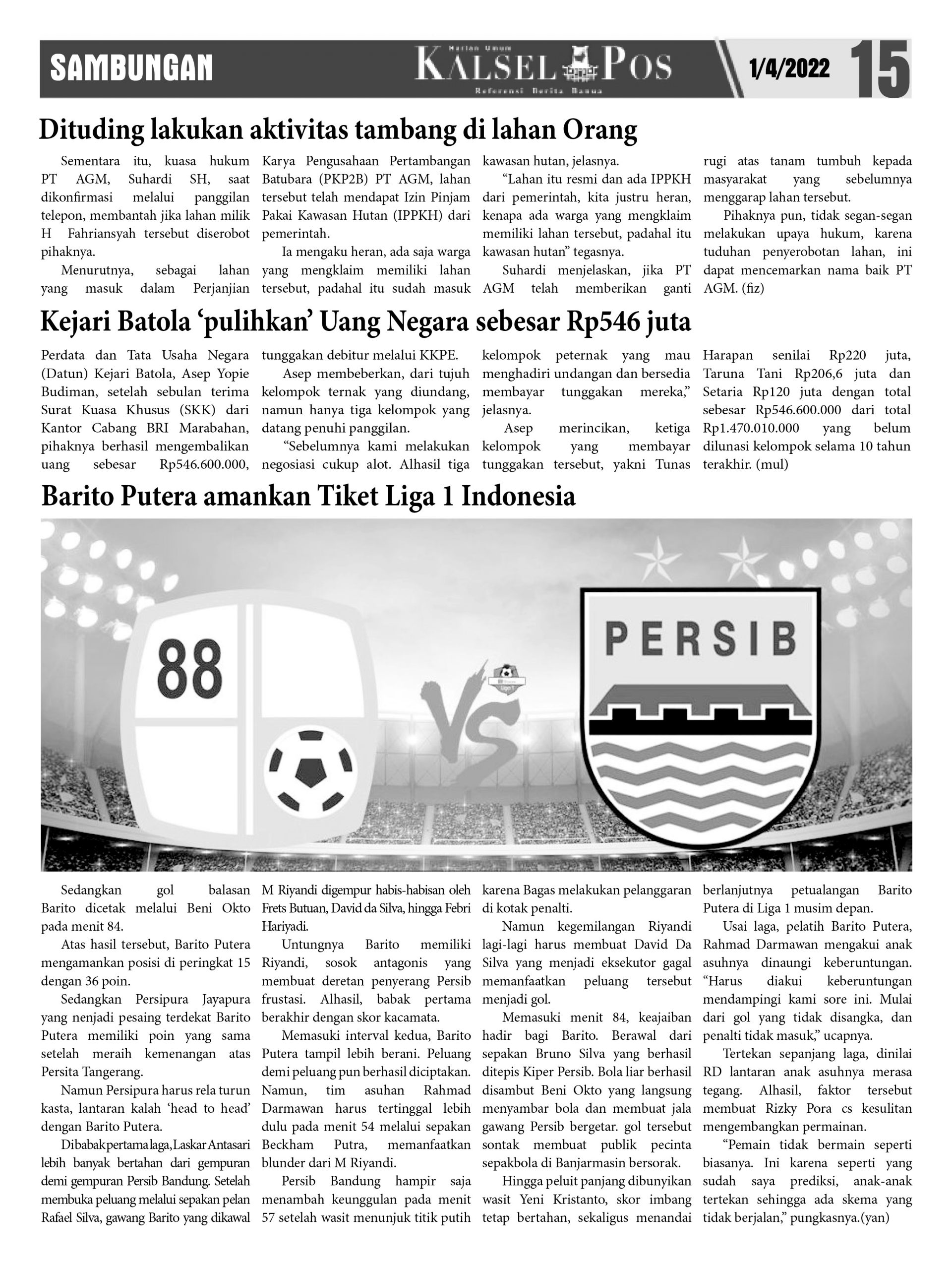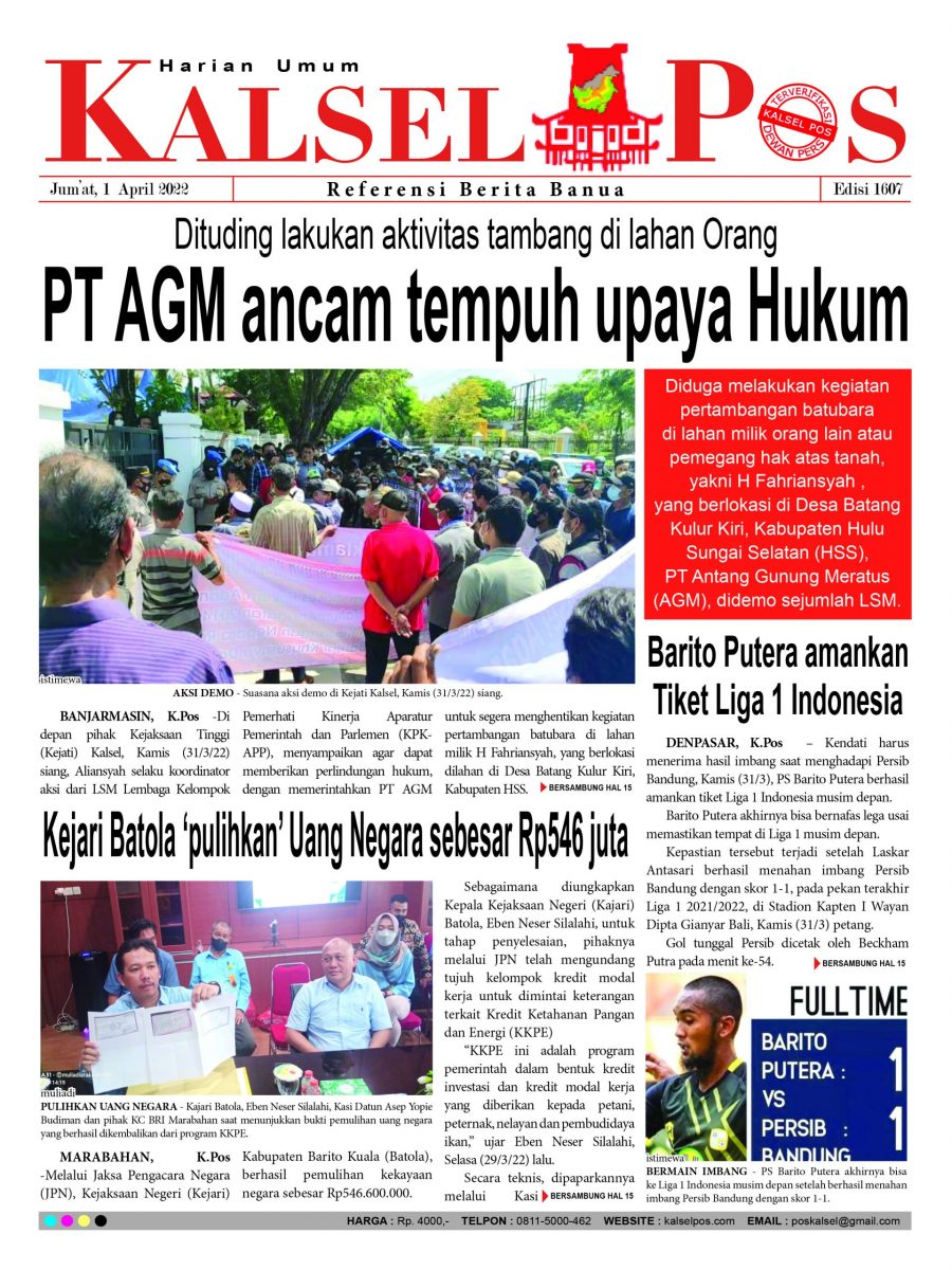 Dituding lakukan aktivitas tambang di lahan Orang. – Epaper Kalselpos 1607 kalselpos1 April 202224 Desember 2025119 views Kalsel Pos Berita Terkini, Kabar Terbaru Hari ini Banjarmasin Kalimantan Selatan dan Nasional Pos terkait67 ribu warga Terancam tak Terlindungi JKNDiduga ‘didominasi’ Satu orang, Pelaksanaan Musprov Percasi tuai Tanya ?Banjir di Kalsel ‘meluas’