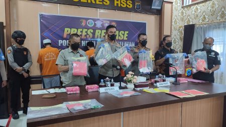 “Dari 19 tersangka, 17 Laki-laki dan 2 perempuan,” ujar Kapolres HSS AKBP Sugeng Priyanto, saat Press Release, hasil operasi Antik Intan dan Jaran Intan 2022, Jumat (1/4) di Mapolres setempat.