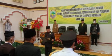 Kotabaru,kalselpos.com – Sekretaris Daerah Drs H Said Akhmad Assegaf MM melantik dan mengambil sumpah jabatan kepada 49 orang Pejabat Tinggi Pratama, Administrator dan Pengawas di lingkungan Pemerintah Kabupaten Kotabaru.