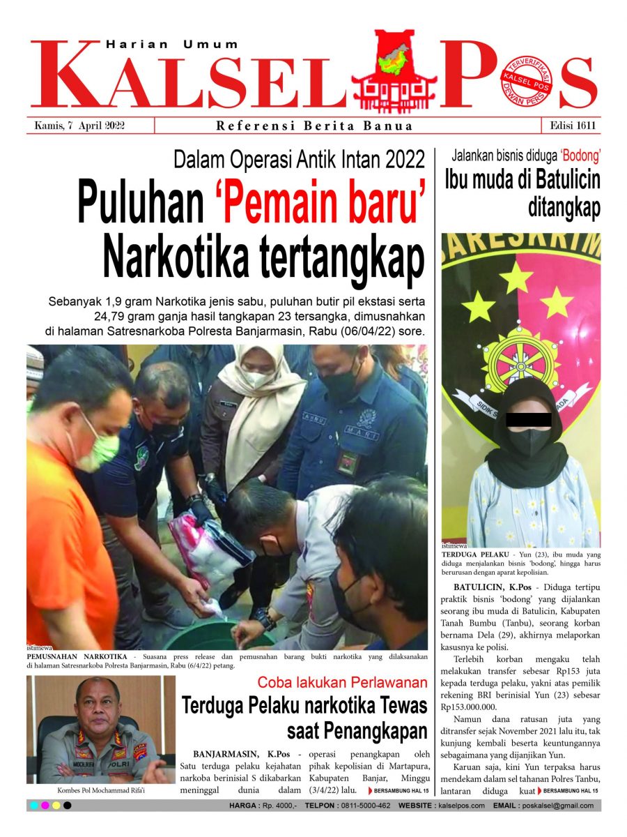 Puluhan ‘Pemain baru’ Narkotika tertangkap. – Epaper Kalselpos 1611 kalselpos7 April 202224 Desember 2025138 views Kalsel Pos Berita Terkini, Kabar Terbaru Hari ini Banjarmasin Kalimantan Selatan dan Nasional Pos terkaitDugaan Tipikor di PT Bangun Banua, Kuasa Pemegang Saham akan ‘Diperiksa’Diduga akibat Balap liar, Dua orang Remaja meninggalKUHP baru Lebih Untungkan Terdakwa, PN Barabai terapkan di Kasus Penganiayaan