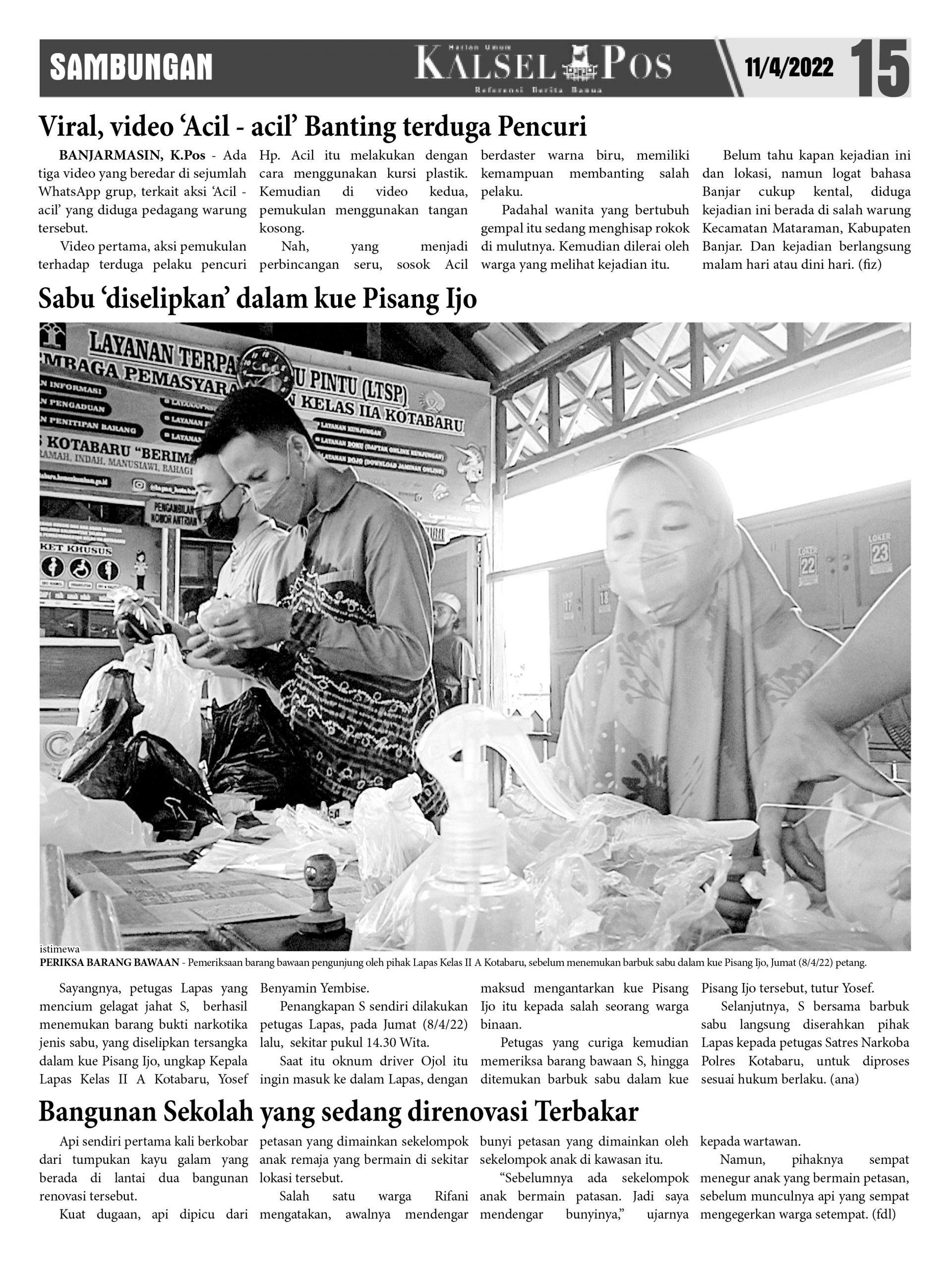 Viral, video ‘Acil – acil’ Banting terduga Pencuri. – Epaper Kalselpos 1613 kalselpos11 April 202224 Desember 2025168 views Kalsel Pos Berita Terkini, Kabar Terbaru Hari ini Banjarmasin Kalimantan Selatan dan Nasional Pos terkait67 ribu warga Terancam tak Terlindungi JKNDiduga ‘didominasi’ Satu orang, Pelaksanaan Musprov Percasi tuai Tanya ?Banjir di Kalsel ‘meluas’