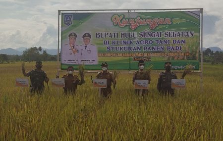 Peninjau UPPO Klinik Agro Tani, dan syukuran panen padi dihadiri Sekda Muhammad Noor, Dandim 1003 HSS Letkol Inf Nurliwedie Nurdin Kanan, Kabag Ren Polres HSS Kompol Ruslan, Asisten II Setda HSS Saputra dan Camat Padang Batung Heri Utomo.