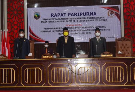 KOTABARU, kalselpos.com – Wakil Ketua II DPRD Kotabaru, M Arif, memberikan tanggapan saat gelaran rapat paripurna yang dilaksanakan pada Senin (25/4/22), terkait dengan penyampaian Laporan Pertanggungjawaban (LKPj) Bupati Kotabaru tahun 2021.